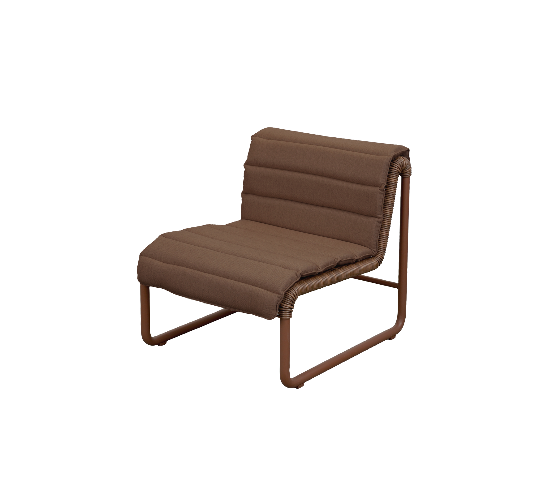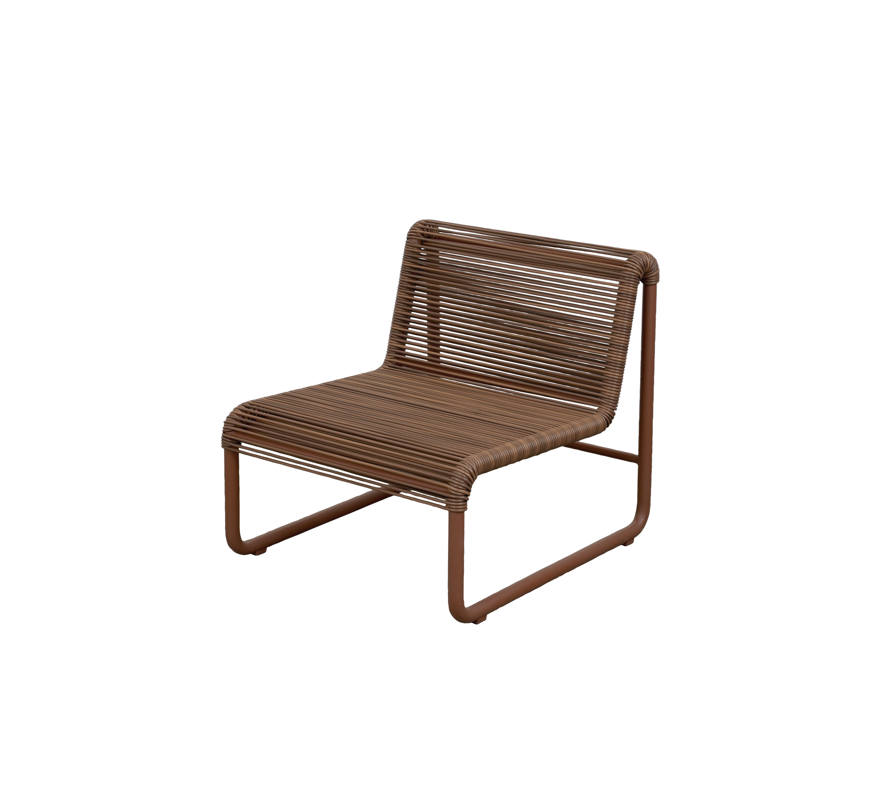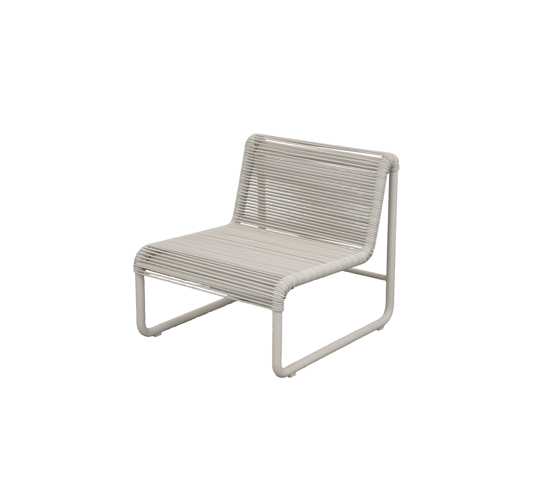 Den fina snörväven är monterad på en hållbar, pulverlackerad aluminiumram, vilket gör loungefåtöljen väl lämpad för både ute och inne – från privata terrasser och poolområden till hotelllounger, lobbys och väntrum. Det luftiga formspråket gör det enkelt att placera flera stolar tillsammans och skapa flexibla, harmoniska miljöer.